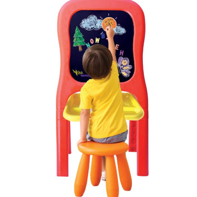 این تابلو آموزشی دوطرفه، یک طرف بلکبرد برای نوشتن با گچ رنگی و طرف دیگر وایتبرد برای استفاده از ماژیک می باشد. این محصول همراه با حروف الفبای فارسی و انگلیسی، به کودکان کمک میکند تا مهارتهای نوشتاری خود را تقویت کنند. این محصول تمرینی موثر برای یادگیری و آموزش نقاشی است که با بدنه پلاستیکی مقاوم ساخته شده و برای مهد کودک ها، خانه، مدرسه یا اتاق بازی مناسب است. ابعاد آن به گونهای است که فضای کمی را اشغال کرده و برای فعالیتهای خلاقانه کودکانه، گزینهای عالی به شمار میآید.